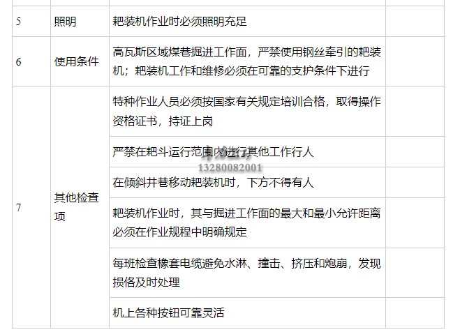 煤礦耙裝機和裝巖(煤)機安全檢查表