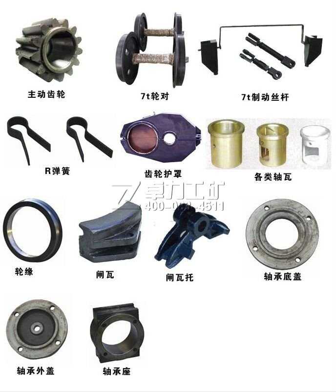 主動(dòng)齒輪、7t輪對(duì) 7t制動(dòng)絲桿 R彈簧 齒輪護(hù)罩 各類軸瓦 輪緣 閘瓦 閘瓦托 軸承底蓋 軸承外蓋 軸承座