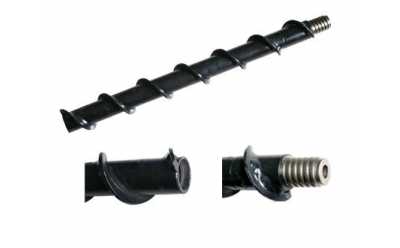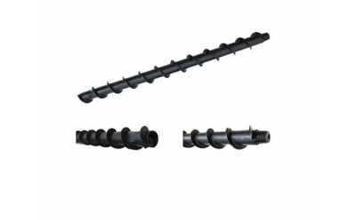 肋骨鉆桿由于螺旋葉片較寬,且具有較高的硬度,因此肋骨鉆桿具有良好的排渣效果,并且適用于各種硬度及各種類型的地層。另外,由于較寬的螺旋葉片,使得該肋骨鉆桿在鉆孔施工過程中不會切削鉆孔的孔壁,不會造成孔壁的偏斜而影響鉆孔效果。