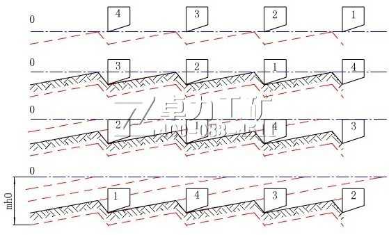 下圖為四翼刮刀鉆頭轉(zhuǎn)一圈吃入井底巖石展開圖
