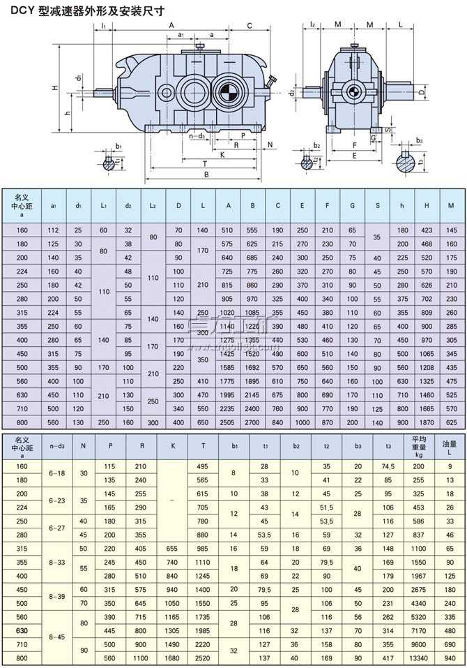 (1)DBY型為二級(jí)傳動(dòng),DCY型為三級(jí)傳動(dòng)。DBY型和DCY型第一級(jí)傳動(dòng)為格里森弧齒錐齒輪,第二、第三級(jí)傳動(dòng)為漸開(kāi)線(xiàn)圓柱斜齒輪。