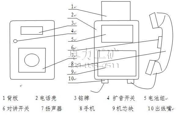 3、防爆型式: 本電話機(jī)為礦用本質(zhì)安全型。4、防爆標(biāo)志:ExibI