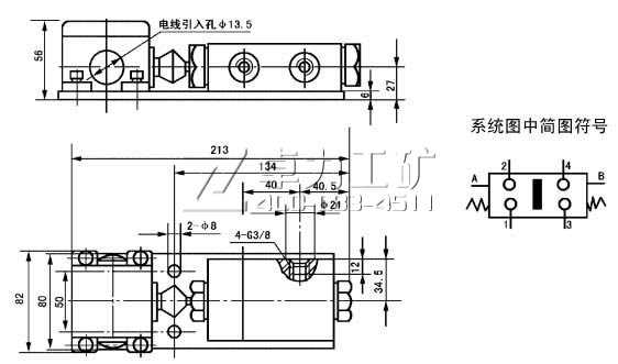 壓差開關(guān)的閥體和行程開關(guān)組裝在一塊底板上。潤滑脂在壓力的作用下從主管道B進(jìn)入壓差開關(guān)閥體活塞的右腔,主管道A卸荷。一旦兩條主管道的壓差達(dá)到5MPa時(shí),活塞克服左腔內(nèi)彈簧力向左移動(dòng),并推動(dòng)行程開關(guān),使觸點(diǎn)1和2閉合,發(fā)出脈沖訊號(hào)至系統(tǒng)電控箱,責(zé)令換向閥換向,這時(shí)主管道A受壓,B卸荷,活塞在二端腔內(nèi)彈簧的作用下對(duì)中,行程開關(guān)觸點(diǎn)1和2斷開,觸橋處中位。系統(tǒng)開始第二周期工作,一旦主管道A和B間壓差又達(dá)到5MPa時(shí),活塞向右移動(dòng),行程開關(guān)觸點(diǎn)3和4閉合,脈沖訊號(hào)再次使系統(tǒng)中的換向閥換向,開始下次循環(huán)工作