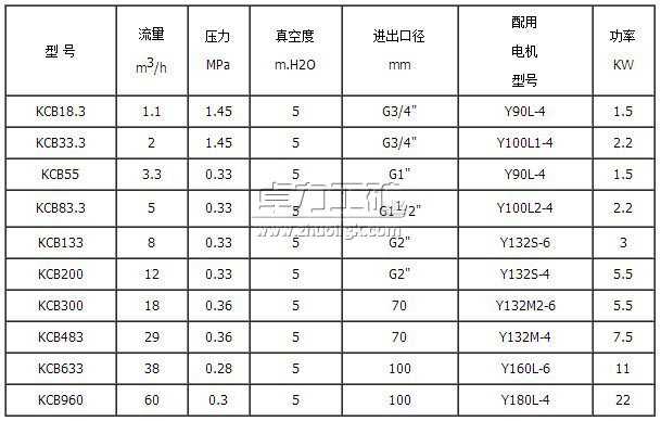 五、KCB齒輪油泵型號(hào)及技術(shù)參數(shù)表