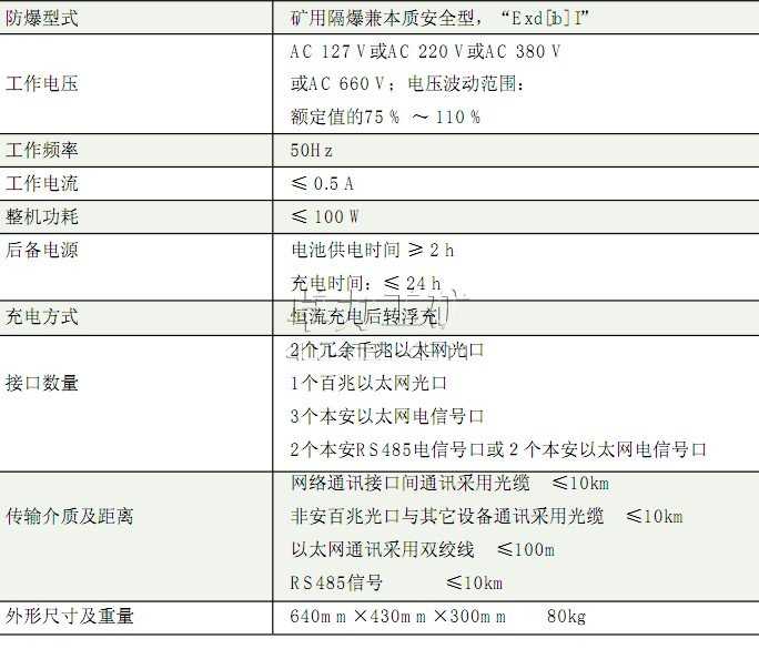 KJJ63型隔爆兼本安環(huán)形網(wǎng)絡(luò)通訊接口(以下簡(jiǎn)稱網(wǎng)絡(luò)接口)屬礦用隔爆兼本質(zhì)安全型設(shè)備,可以在有甲烷、煤塵爆炸的危險(xiǎn)環(huán)境中使用,為具備以太網(wǎng)接口或具備RS485通訊接口的設(shè)備提供信息交換渠道。設(shè)備提供8個(gè)以太網(wǎng)接口,2個(gè)千兆以太網(wǎng)光口,1個(gè)百兆以太網(wǎng)光口,3個(gè)本安10M/100M自適應(yīng)以太網(wǎng)電口、2個(gè)本安標(biāo)準(zhǔn)RS485通訊接口,同時(shí)具備千兆以太網(wǎng)冗余功能,適合組建千兆骨干網(wǎng)絡(luò)。