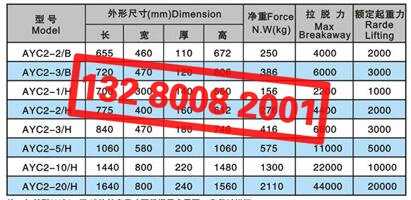 AYC2系列全自動永磁起重器技術(shù)參數(shù)表