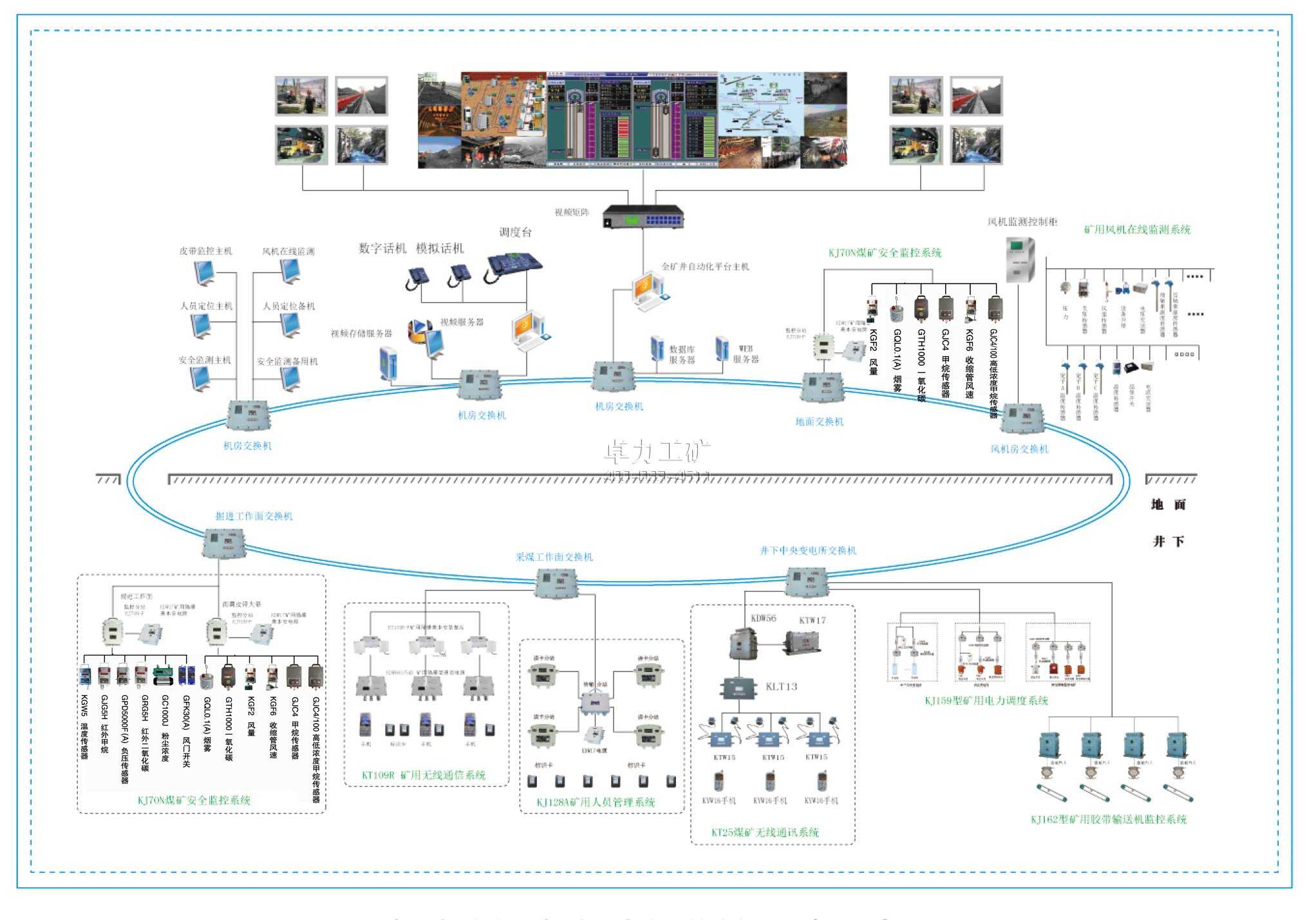 全礦井綜合自動化系統(tǒng),是一個1000Mbps冗余工業(yè)以太網(wǎng)井上、下自動化控制網(wǎng)絡(luò)平臺,是以工業(yè)以太環(huán)網(wǎng)為核心,整合礦井的各項自動控制系統(tǒng),通過防火墻與礦級管理系統(tǒng)組成高速統(tǒng)一的整體網(wǎng)絡(luò)結(jié)構(gòu),實現(xiàn)了全礦井的管控一體化。 整個系統(tǒng)分為信息層、控制層、和設(shè)備層三層體系結(jié)構(gòu)。控制層采用工業(yè)以太環(huán)網(wǎng),設(shè)備層采用現(xiàn)場總線,保證了現(xiàn)場子系統(tǒng)的實時性,實現(xiàn)了井上、下皮帶運輸、通風(fēng)、排水、井下供電等井下主要安全生產(chǎn)環(huán)節(jié)和裝備運行狀況的實時監(jiān)測和集中、遠程控制,有效地提高了礦井生產(chǎn)自動化和管理現(xiàn)代化水平。實現(xiàn)全礦井的統(tǒng)一管理與數(shù)據(jù)共享。