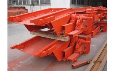 當(dāng)罐籠位置高于±0.000位置,將由搖臂搭接在罐籠上,保證礦車(chē)順利進(jìn)出罐籠。補(bǔ)償高度可達(dá)500mm。