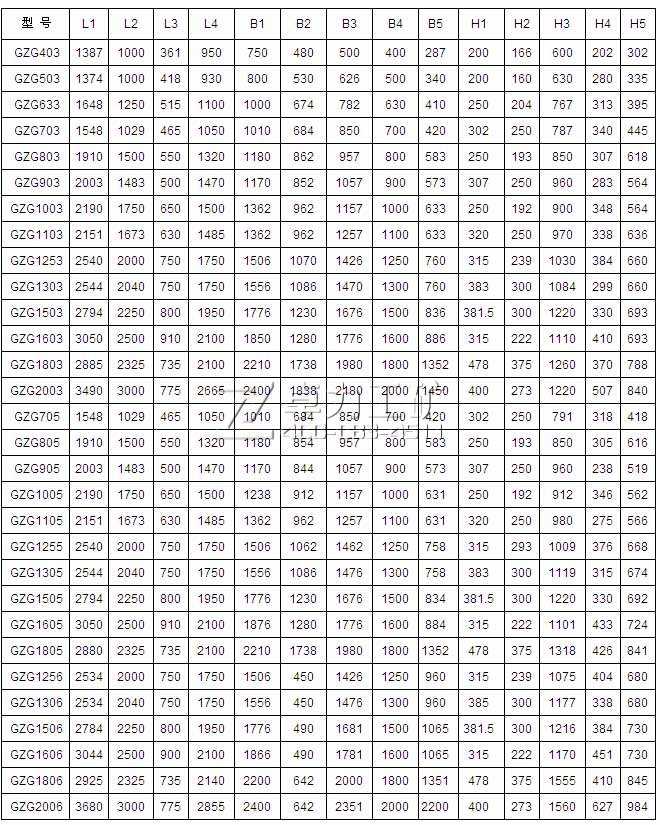 | GZG1603 | 1600×2500×315 | 770 | 1100 | 500 | 4 | ZG450 | 2×6.82 | 2×3.0 | 1555 | |||