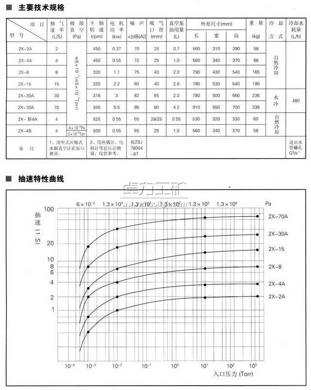 三、2XZ型直聯(lián)真空泵型號(hào)及技術(shù)參數(shù)表